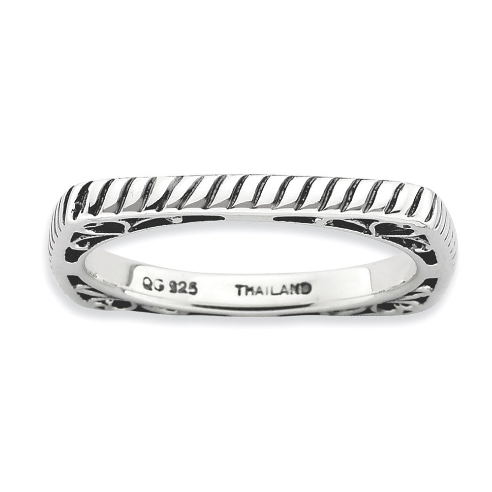 The Sterling Silver Stackable Expressions Polished Antiqued Square Ring is perfect for adding a cool touch to your look. Crafted from high-quality 925 sterling silver, it features a sleek square shape with a unique antiqued finish that brings out its charm. With a slim 2.25 mm band, this ring is comfortable for everyday wear. Its stackable design lets you mix and match with other rings, giving you endless style options. The raw elegance of the Sterling Silver Stackable Expressions Ring makes it a must-have in any collection. This piece is all about smart style that lasts.