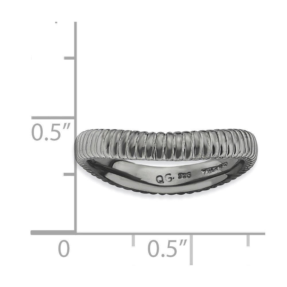 The Sterling Silver Stackable Expressions Polished Black-Plate Wave Ring is a sleek piece that adds style to any outfit. Crafted from high-quality 925 sterling silver, it features a polished finish and a striking black ruthenium plating, creating a bold look. The 3.25 mm band is perfect for stacking or wearing alone for a simple yet chic vibe. Light and comfortable, this ring is ideal for daily wear or special occasions. The name says it all—Sterling Silver Stackable Expressions Polished Black-Plate Wave Ring offers a fresh touch to your jewelry collection.