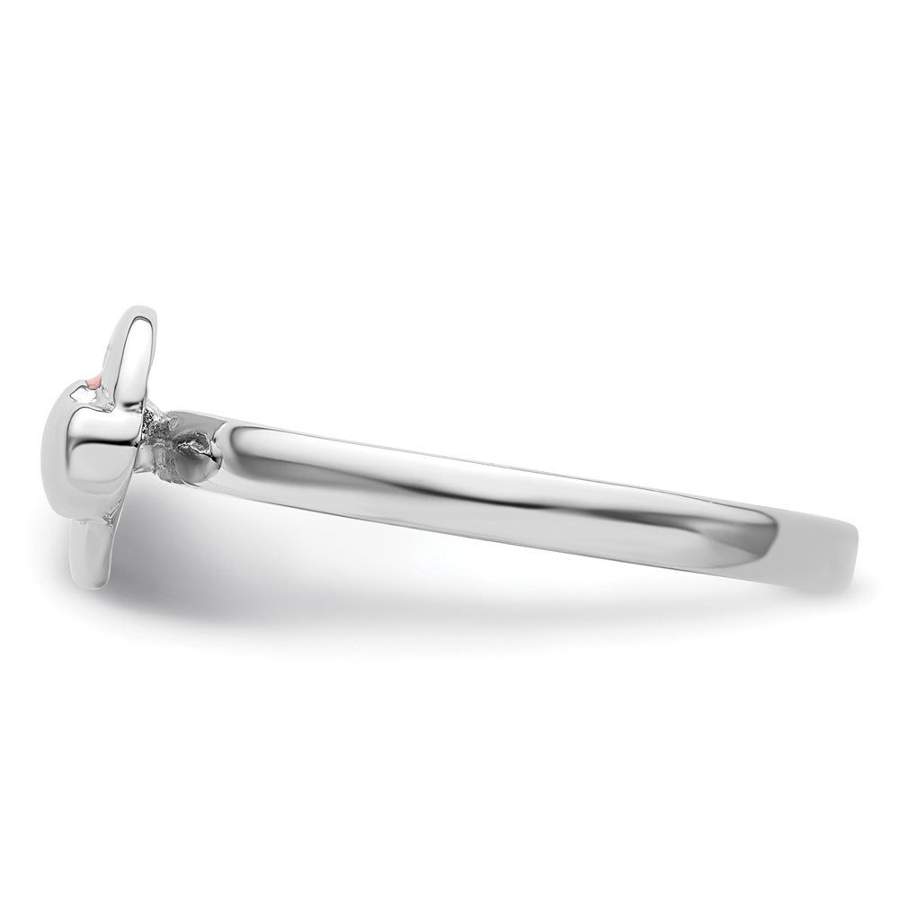 The Sterling Silver Stackable Expressions Polished Pink Enameled Heart Ring is a lovely choice for any jewelry fan. Crafted from genuine 925 sterling silver, this ring boasts a bright polish that adds shine. A pink enamel heart makes it stand out and gives it a fun, flirty look. Its narrow 2.25 mm band easily stacks with other rings for a custom look. The ring is cast for solid strength and finished with rhodium for lasting shine. Whether you wear it solo or with others, the Sterling Silver Stackable Expressions Polished Pink Enameled Heart Ring is a perfect piece to brighten your style.
