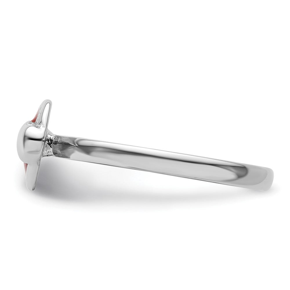 The Sterling Silver Stackable Expressions Polished Red Enameled Heart Ring is a charming piece that adds style and fun to your jewelry collection. Made from high-quality 925 sterling silver, this ring features a smooth, polished finish and a bold red enamel heart for a pop of color. Its slim 2.25 mm band fits comfortably and can be stacked with other rings for a trendy look. The rhodium plating boosts durability and keeps your ring shiny longer. Perfect for everyday wear and special occasions, the Sterling Silver Stackable Expressions Polished Red Enameled Heart Ring is a must-have for jewelry lovers seeking a mix of elegance and ease.