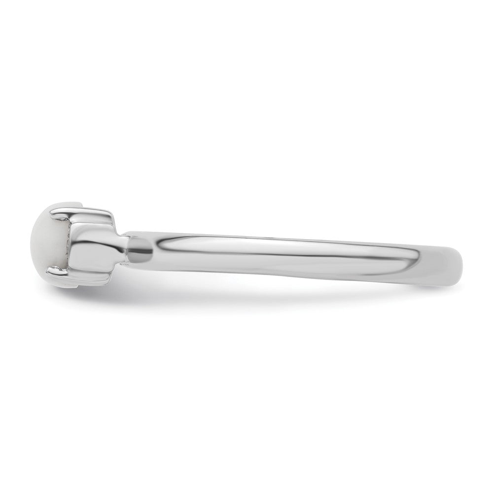 The Sterling Silver Stackable Expressions Polished White Agate Ring is sure to catch the eye. Made from pure 925 sterling silver, this ring features a smooth, shiny finish. The standout feature is a 6mm round white agate stone, prong set for secure wear. Its slim 2.5mm band makes stacking easy and stylish. Rhodium plating adds extra shine and resistance to tarnish. Whether worn alone or paired with others, the Sterling Silver Stackable Expressions Polished White Agate Ring offers a sleek, timeless look. Perfect for everyday wear or special occasions, it’s a jewelry piece you can rely on.