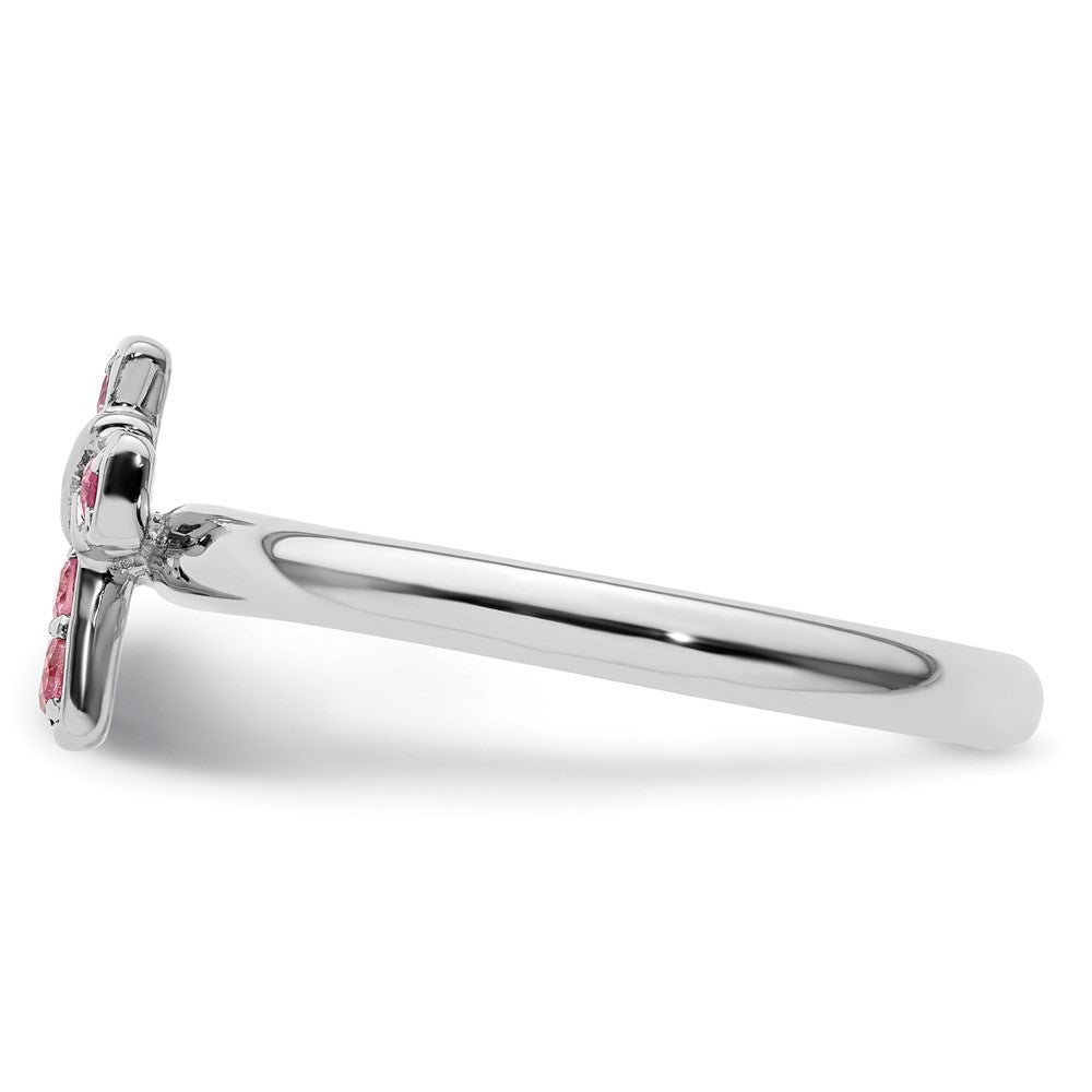 The Sterling Silver Stackable Expressions Rhodium Pink Tourmaline Cross Ring is a trendy piece that suits all styles. Crafted from solid 925 sterling silver, it features a sleek rhodium finish that resists tarnish. The ring showcases a pink tourmaline cross at its center, surrounded by smaller pink stones that add sparkle and charm. Its stackable design lets you mix and match for a personalized look. With its durable cast build and delicate prong settings, this ring is built to last and shine. Perfect for everyday wear, the Sterling Silver Stackable Expressions Rhodium Pink Tourmaline Cross Ring brings a pop of color and faith to your jewelry collection.