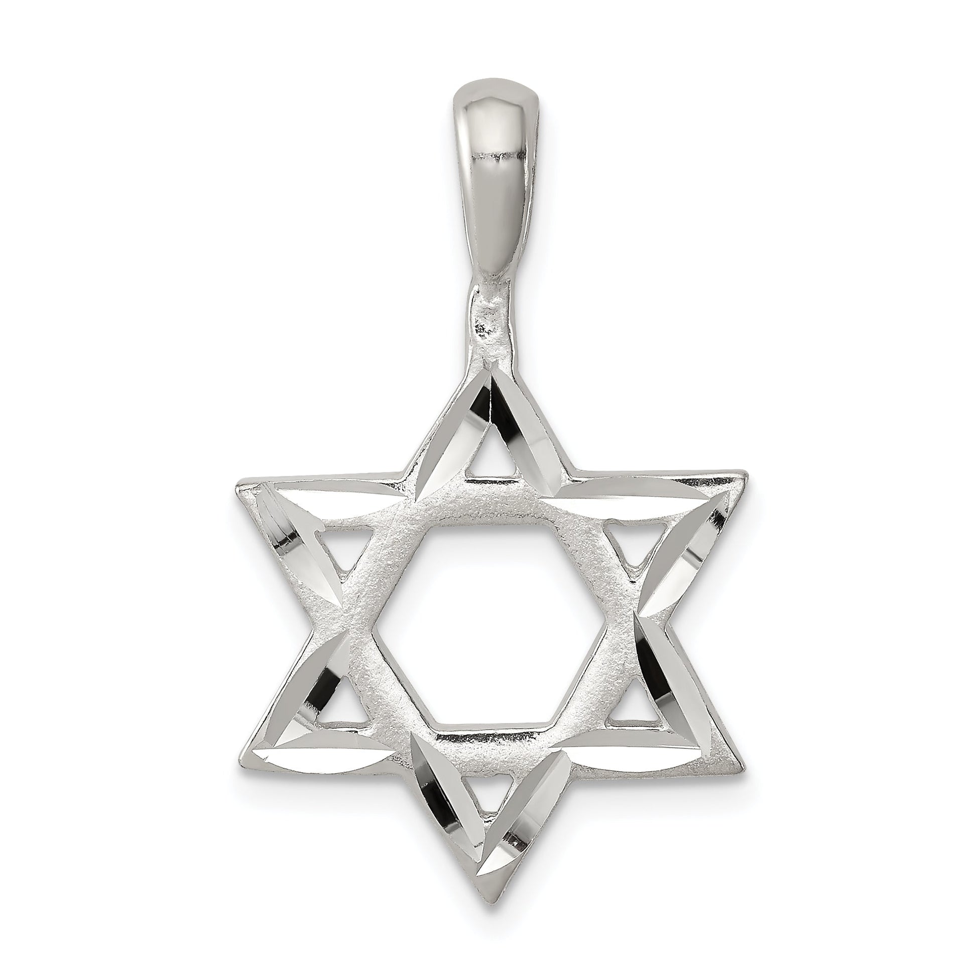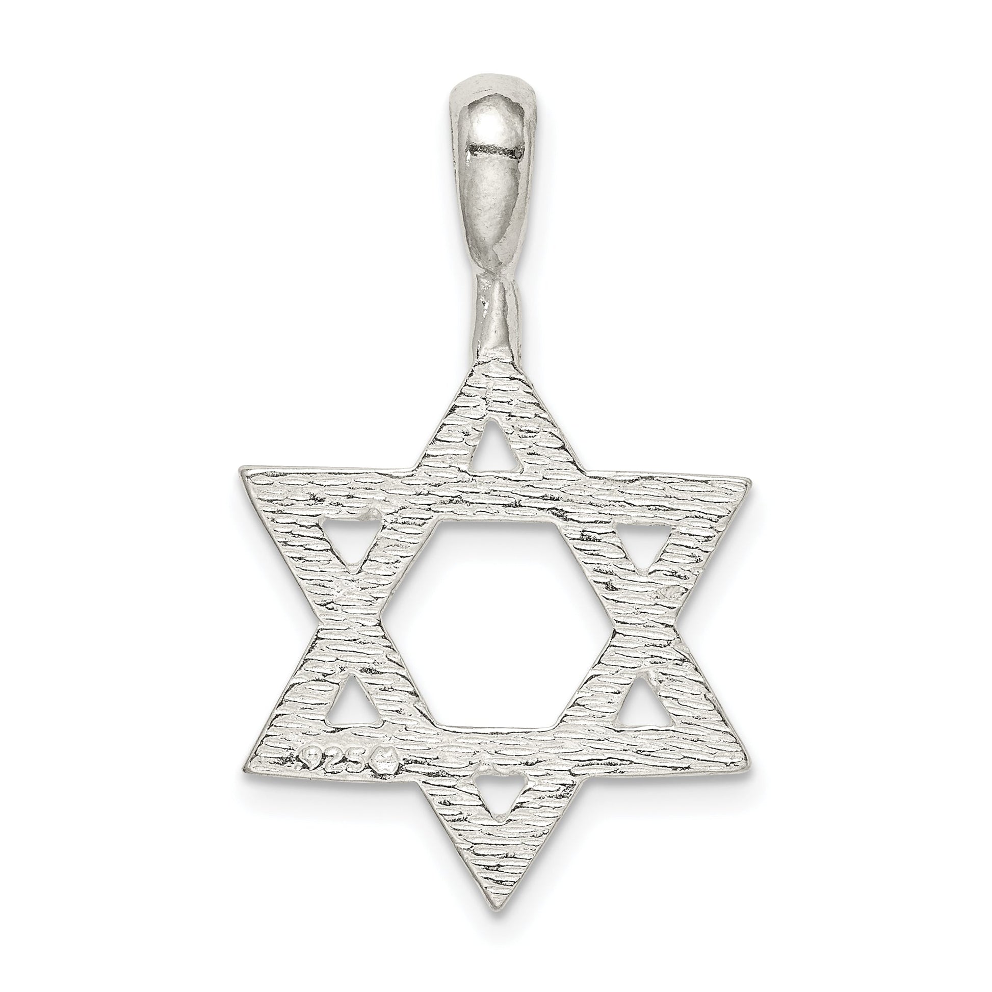 Discover elegance with the Sterling Silver Star of David Charm. Crafted from genuine 925 sterling silver, this piece shines with a polished finish. Measuring 31 mm in length, its charm itself spans 20.23 mm by 17.97 mm, making it a beautiful yet subtle accessory. Thanks to its anti-tarnish coat, it retains its shine and detail. Its solid construction, formed through precise casting techniques, ensures durability. The 2.97 mm bail easily fits most chains, adding versatility. Embrace timeless style with the Sterling Silver Star of David Charm.