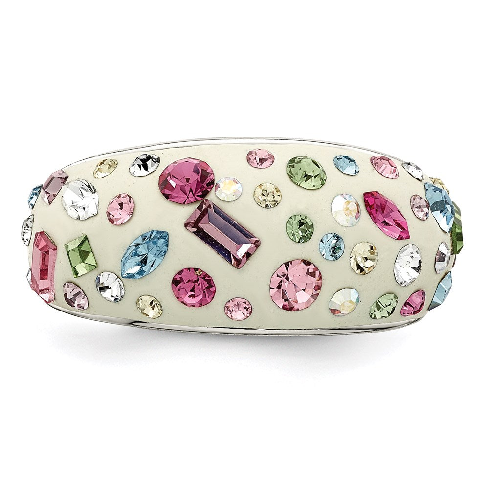 The Sterling Silver Stellux Crystal Multi-Color White Ring is a stunning piece that adds sparkle to any look. Crafted from high-quality 925 sterling silver, it features a 5 mm band with brilliant multi-color and white crystals. The anti-tarnish coating keeps the ring shining bright over time. Designed for women who want style and durability, this fashion ring is cast from solid silver for a sport, sleek look. Perfect for dressy nights or casual days, the Sterling Silver Stellux Crystal Multi-Color White Ring blends quality with eye-catching charm to make any outfit stand out.