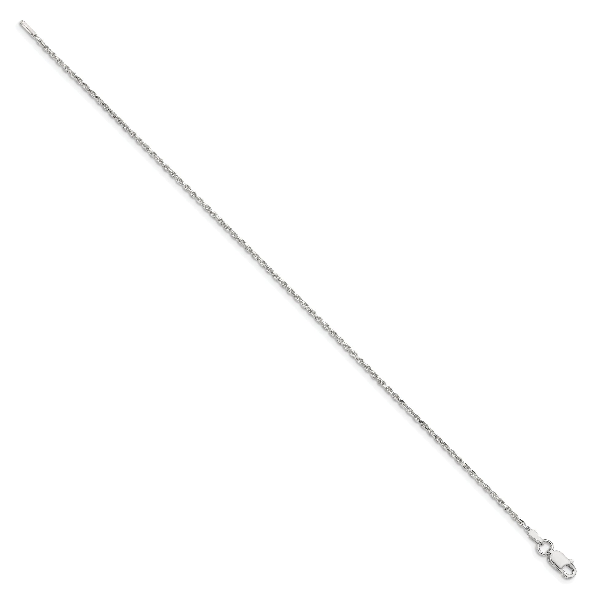 Introducing the Sterling Silver 1.5mm Diamond-cut Rope Chain Bracelet—an elegant touch for any outfit. Crafted from 925 sterling silver, this polished bracelet features a durable lobster clasp and an 8-inch length. The diamond-cut design adds a dazzling texture, reflecting light with every move. Anti-tarnish coating ensures lasting shine, while the solid construction provides everyday wearability. Ideal for women who appreciate fine jewelry, this piece combines sophistication and durability. The Sterling Silver 1.5mm Diamond-cut Rope Chain Bracelet makes a beautiful addition to any collection.