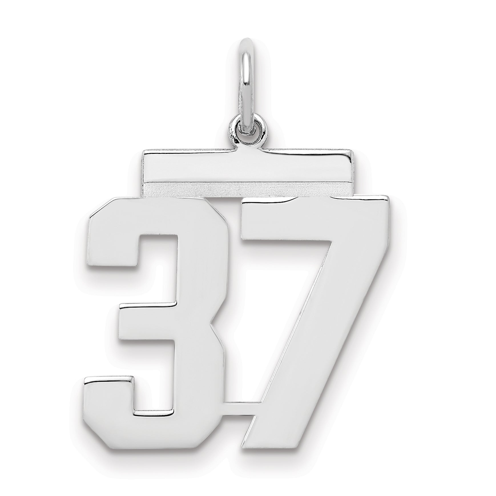 Discover a timeless memento with the Sterling Silver Rhodium-Plated Polished Number 37 Charm. Made from 925 sterling silver, this charm shines with a bright, polished finish. This piece measures 21 mm in length and 16 mm in width, making it a versatile charm to add to bracelets or necklaces. The rhodium plating not only adds a silver tone but also enhances durability. Ideal for those celebrating a special milestone associated with the number 37, this charm combines elegance with personal significance. Embrace classic style with the Sterling Silver Rhodium-Plated Polished Number 37 Charm.