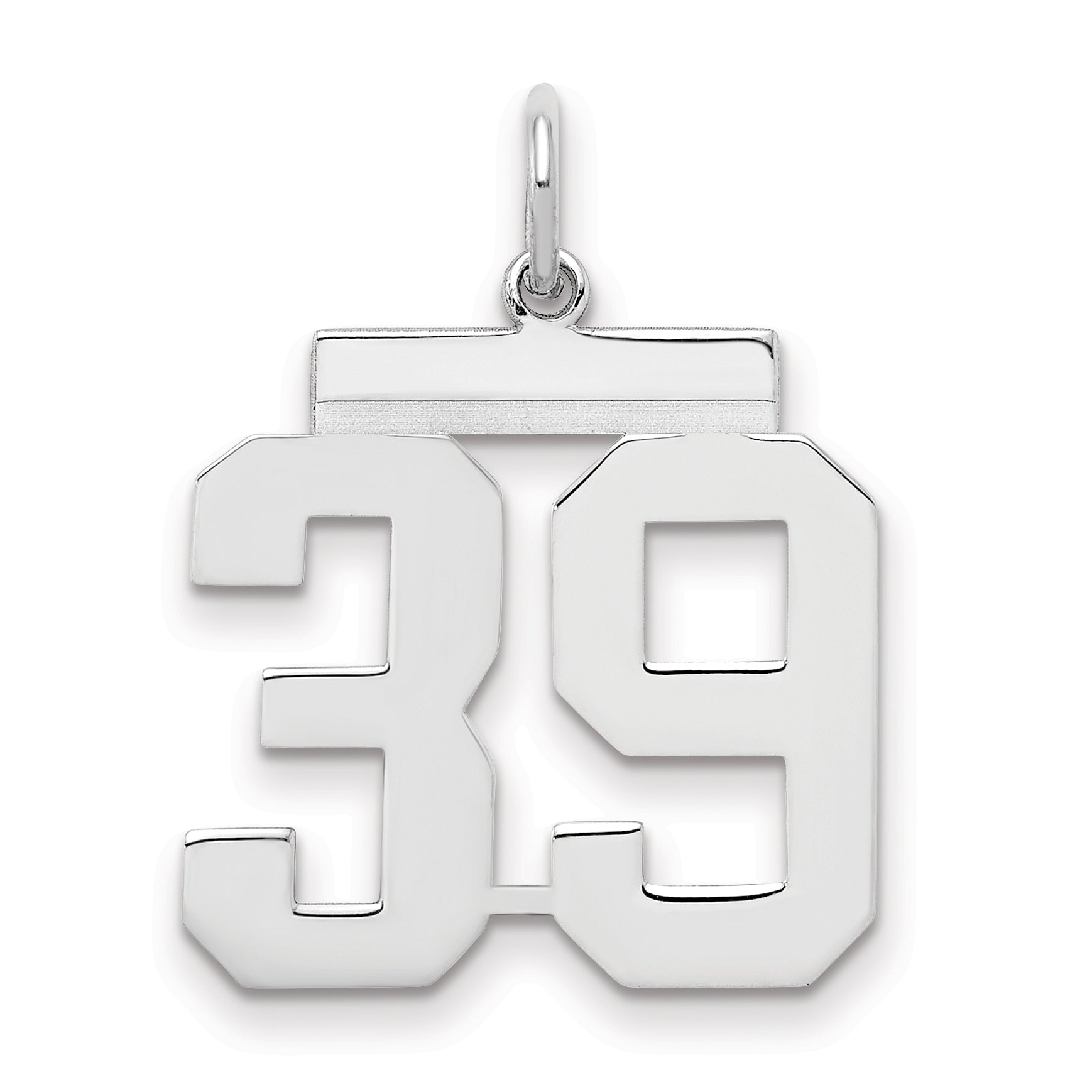 This captivating Sterling Silver Sterling/Silver Rhodium-Plated Polished Number 39 Charm is crafted with perfection in solid 925 sterling silver. Its gleaming rhodium finish highlights the charm’s elegant and polished design. Measuring 21 mm in length and 16 mm in width, this medium-sized pendant is perfect as a personal piece or a personalized gift. The silver tone resonates with timeless style, making it a versatile addition to any jewelry collection. Embrace the allure of the polished Sterling Silver Sterling/Silver Rhodium-Plated Polished Number 39 Charm and enhance your style effortlessly.