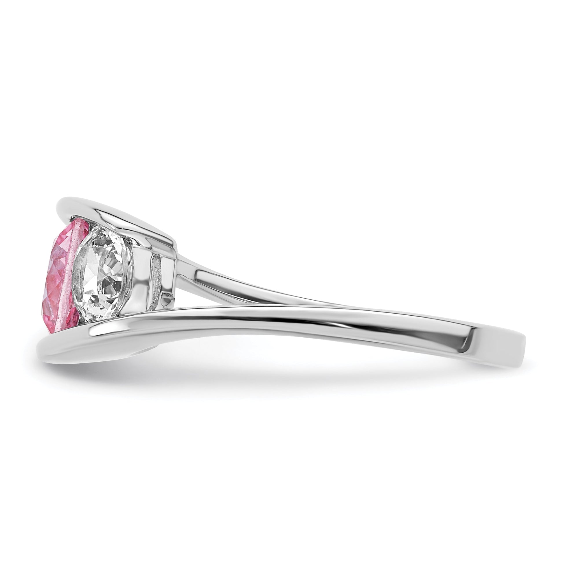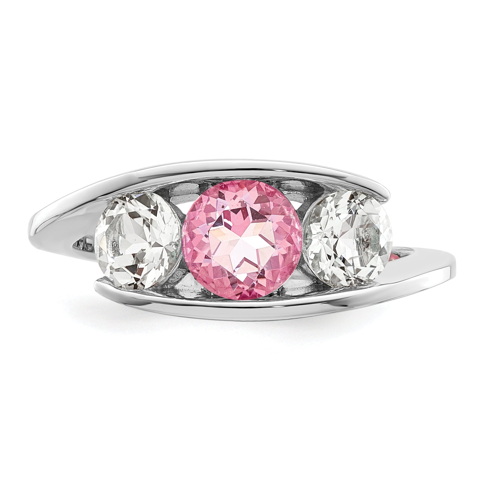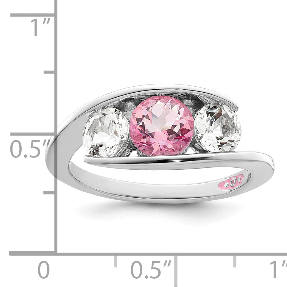 Discover elegance with the Sterling Silver Survivor Collection Rhodium-Plated White and Pink Topaz Journey Ring. Crafted from high-quality 925 sterling silver, this bold ring features two stunning white topaz stones and a soft pink topaz, all set in a channel-design for a sleek look. The rhodium finish adds a bright shine and helps resist tarnish. With a wide band and open back for comfort, this piece is perfect for any occasion. Packaged in a gift box, the Sterling Silver Survivor Collection Rhodium-Plated White and Pink Topaz Journey Ring makes a meaningful gift or a stylish addition to your jewelry collection.