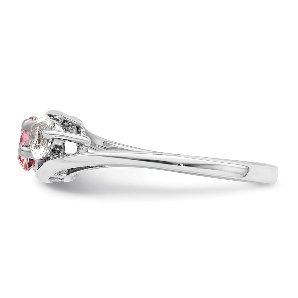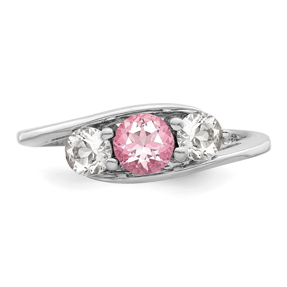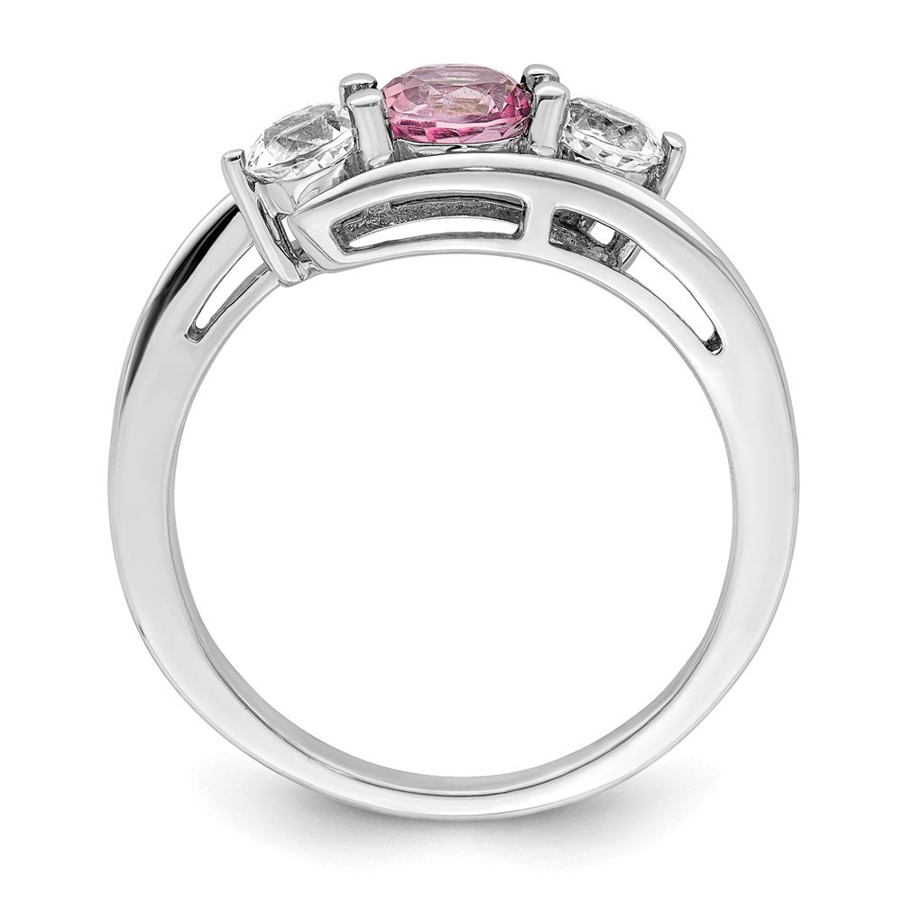 The Sterling Silver Survivor Collection Rhodium-Plated White and Pink Topaz Sue Ring is a stunning piece that showcases timeless beauty. Crafted from 925 sterling silver with a sleek rhodium finish, this ring features two sparkling white passion topaz stones and a charming pink passion topaz, all set in a solid, cast design. The open back and shared prong settings highlight the elegant round faceted cuts. With a slim band and polished look, this ring offers a perfect blend of style and durability. The Sterling Silver Sue Ring makes a great gift, arriving beautifully boxed and ready to impress.