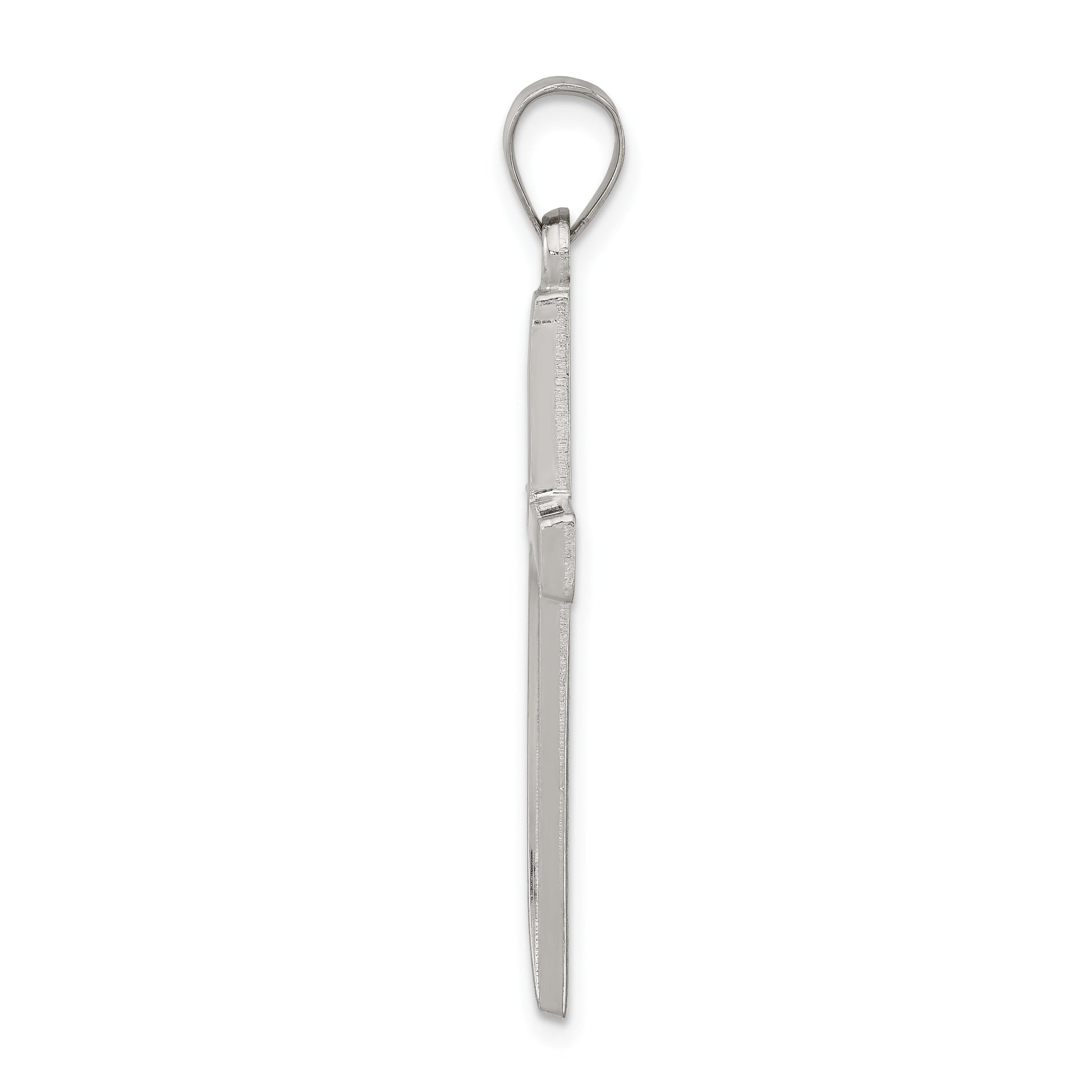 The Sterling Silver Textured, Brushed, and Polished Latin Cross Pendant is a dazzling piece that stands out with its unique design. Carefully crafted from 925 sterling silver and coated with elegant palladium, this pendant offers both durability and sophistication. The detailed cross measures 30.65 mm in length and 20 mm in width, providing a noticeable yet refined presence. Its charming textured and polished finish catches the eye, making it a meaningful addition to any jewelry collection. This stunning Sterling Silver Textured, Brushed, and Polished Latin Cross Pendant is more than an accessory; it's a statement.