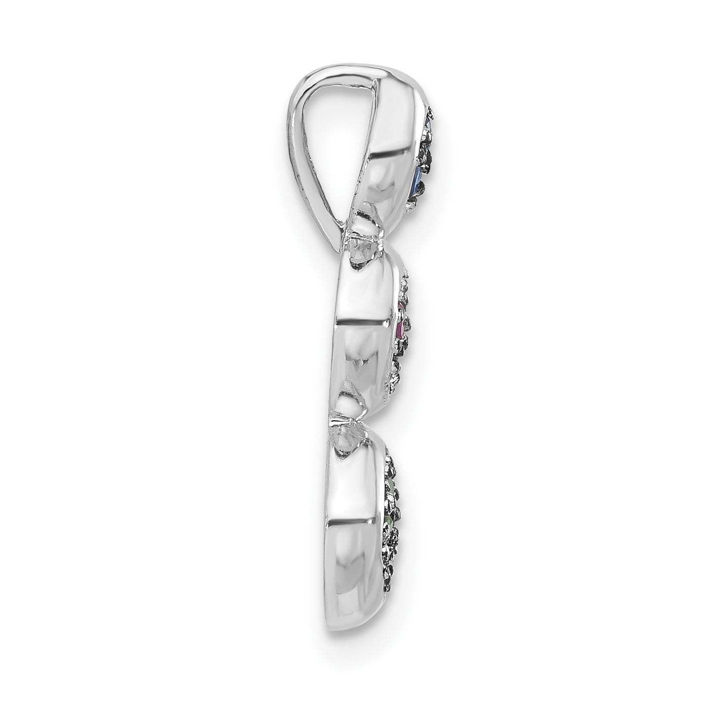 The Sterling Silver with Black Rhodium Chain Slide Pendant exudes a touch of elegance and flair. Crafted from pure 925 sterling silver, the polished look enhances its refined appeal. The piece features synthetic stones set against a stunning black rhodium accent, adding bold contrast and drama to its design. At a length of 20.15 mm and a width of 7.65 mm, this complete piece dazzles as it slides effortlessly along a chain. This women's pendant stands out in white sterling silver, offering a contemporary charm. The Sterling Silver with Black Rhodium Chain Slide Pendant makes an ideal centerpiece for any elegant occasion.