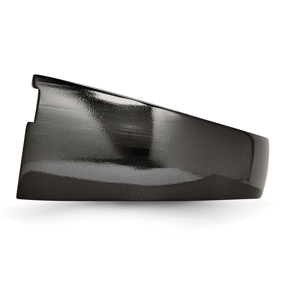 The Titanium Black Ti Polished Blue Anodized Stripe Ring is a sleek piece of men's jewelry. Crafted from durable titanium, it offers a polished finish that catches the eye. The bold blue anodized stripe adds a modern touch, making this ring stand out. Designed for everyday wear, it fits comfortably and boasts a stylish look. This ring, with its unique color and sturdy build, is perfect for men who want a subtle yet striking accessory. Titanium Black Ti Polished Blue Anodized Stripe Ring blends strength with style, making it a great addition to any wardrobe.