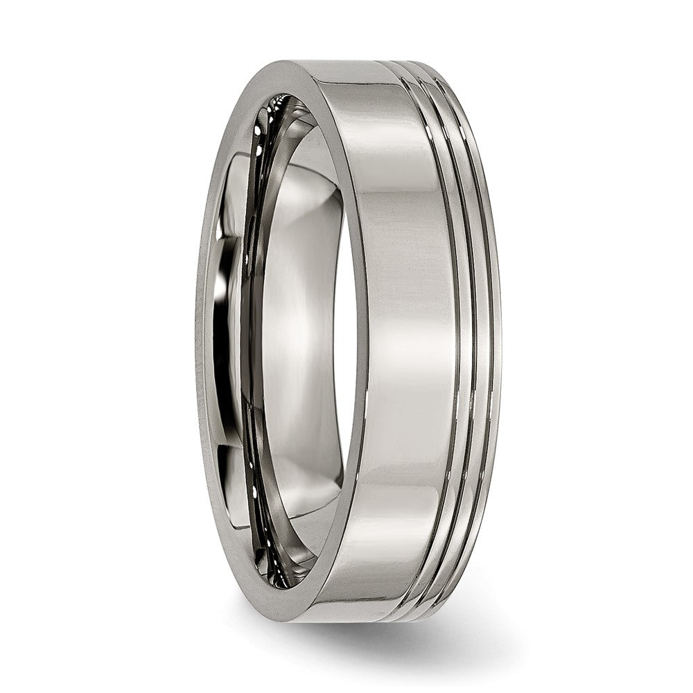 The Titanium Grooved 6mm Polished Band is a sleek ring for both men and women. Made from durable titanium, it offers a polished finish that shines with clean lines. The band is 6mm wide and less than 2mm thick, giving it a light, comfortable feel. Its simple yet stylish design makes it perfect for daily wear or special moments. The ring is engravable, so you can add a personal touch. Whether you’re looking for a wedding band or a everyday ring, Titan helps make your choice stand out.