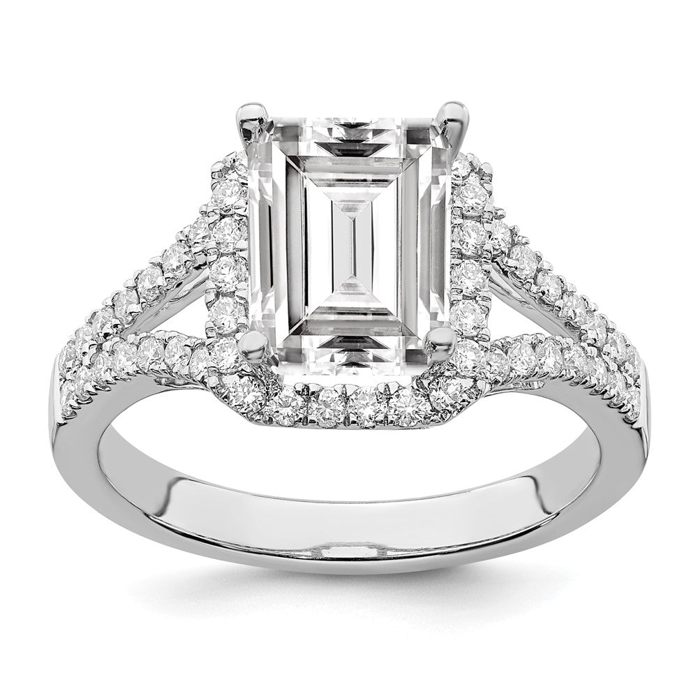 True Origin 14K White Gold 1/2 carat Lab Grown Diamond VS+ F+ Semi-Mount Emerald Halo Engagement Ring