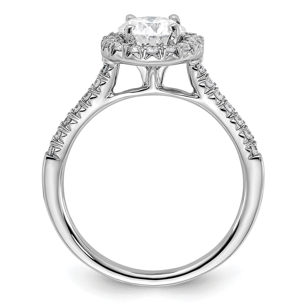Introducing the True Origin 14K White Gold Lab Grown Diamond Semi-Mount Round Halo Engagement Ring, a stunning choice for your special moment. Crafted from polished 14K white gold, this ring features a beautiful halo of 14 sparkling lab-grown diamonds encircling the center stone area. Its sleek, modern design accentuates the heart of your love with an open back for a comfortable fit. Perfect for customizing with your choice of center stone, this ring allows you to express your unique style. Celebrate love and commitment with the True Origin ring, an elegant piece that speaks volumes.